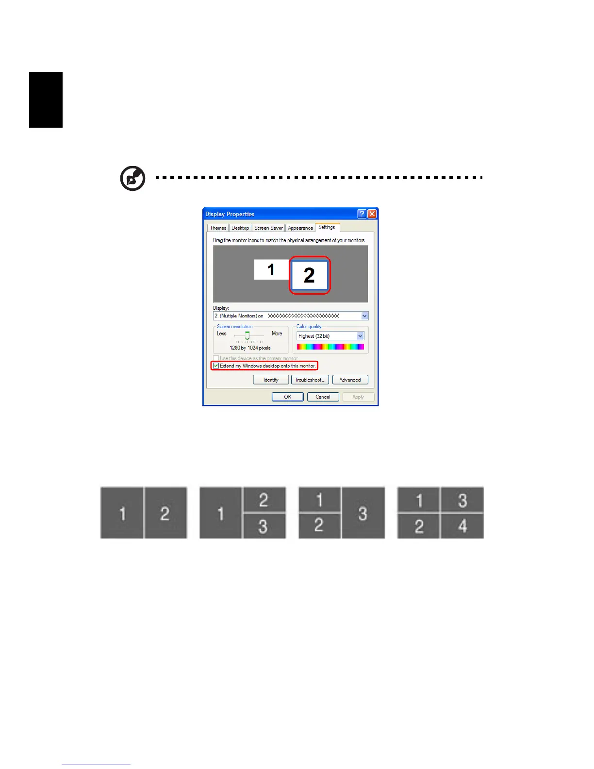 the check box Extend my windows desktop onto this monitor. Finally, Apply the