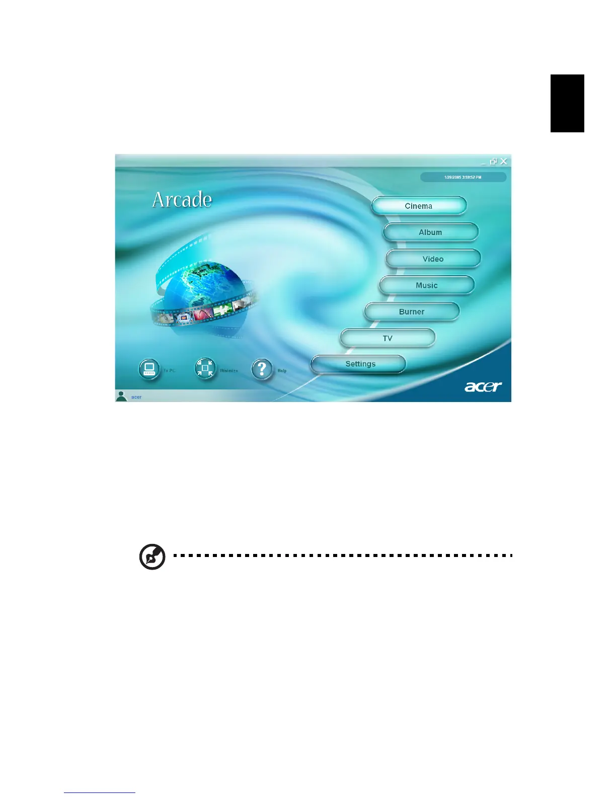 Acer Arcade is an integrated player for music, photos, DVD movies, and videos.