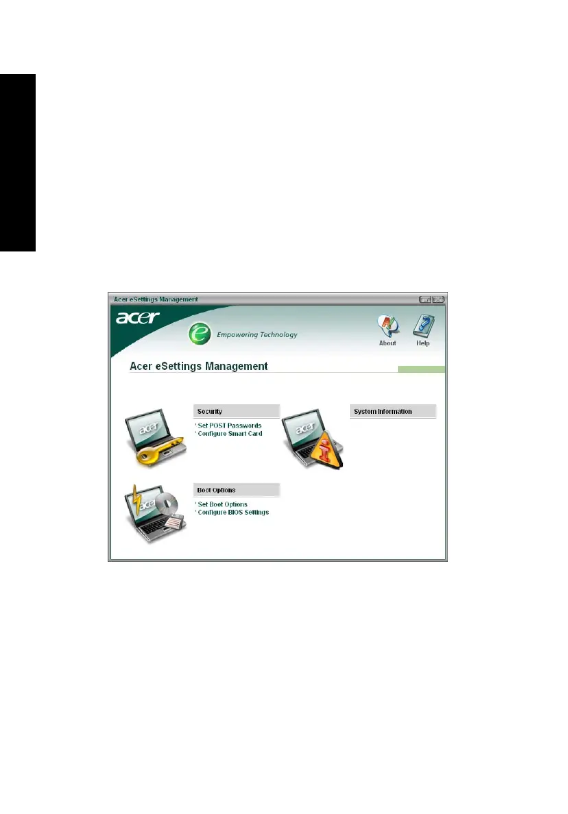 to monitor the system health status. Furthermore, Acer eSettings Management
