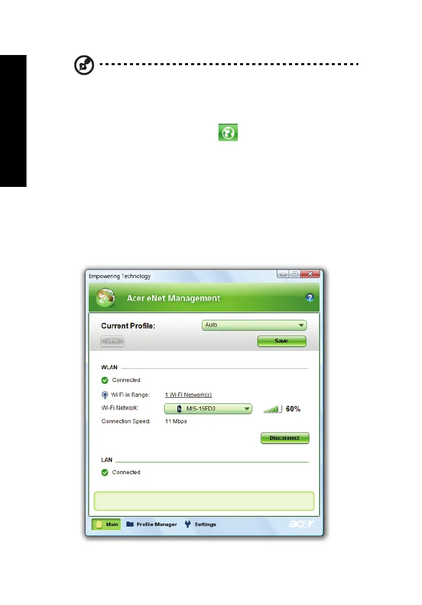 networks in a variety of locations. To access this utility, select "Acer eNet