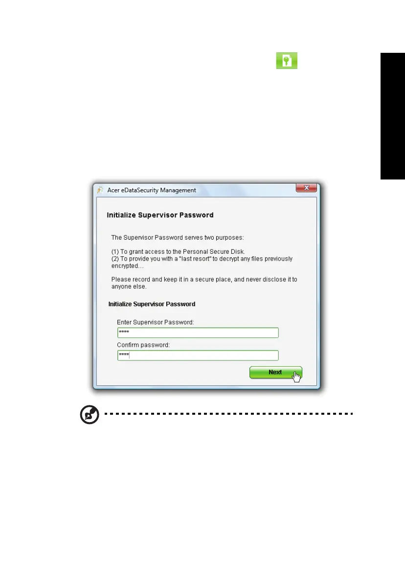 The Acer eDataSecurity Management setup wizard will prompt you for a