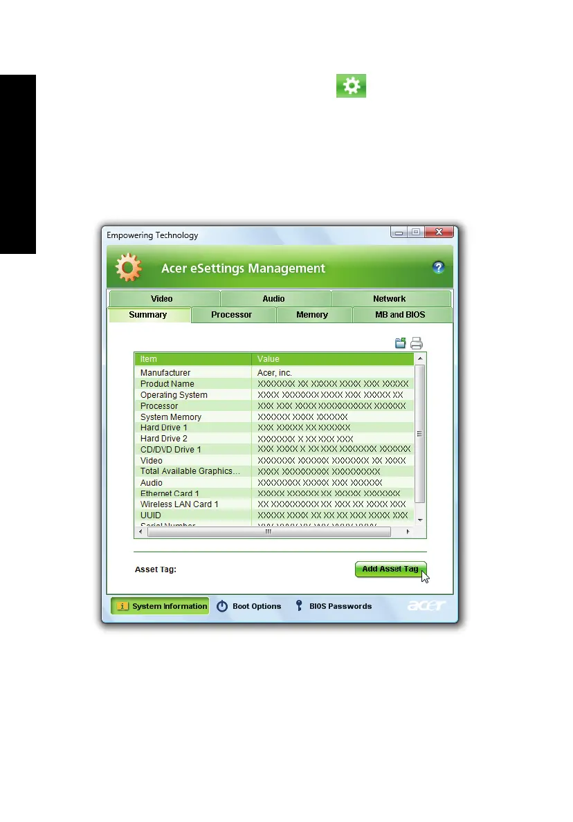 Acer eSettings Management allows you to inspect hardware specifications, set
