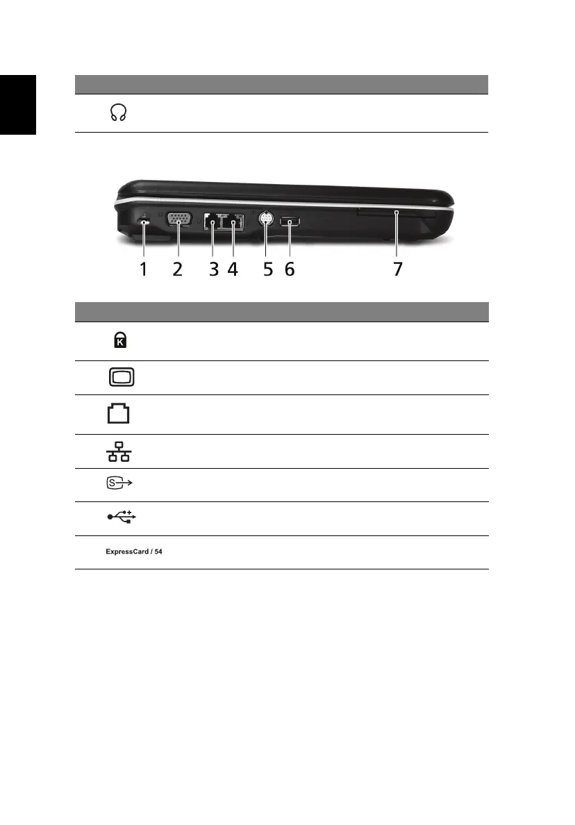 6 USB 2.0 port Connect to USB 2.0 devices (e.g., USB