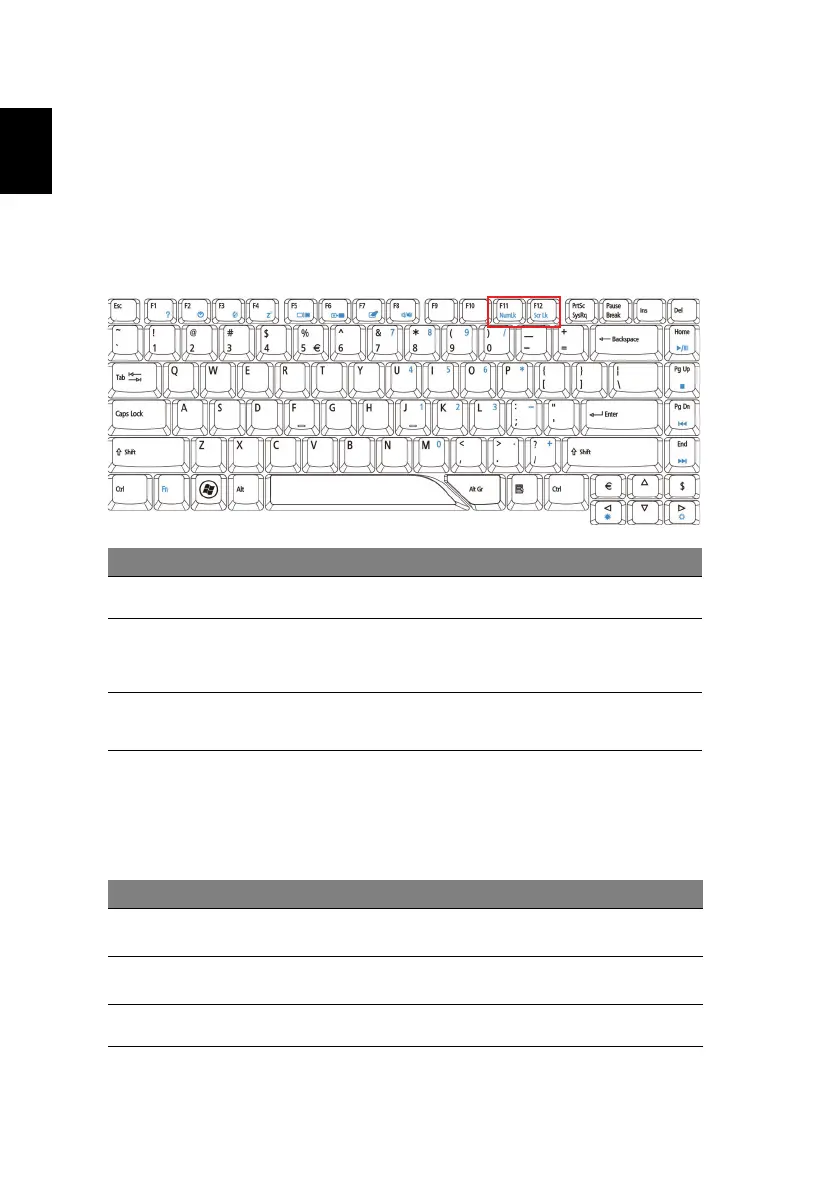 cursor, lock, Windows, function and special keys.