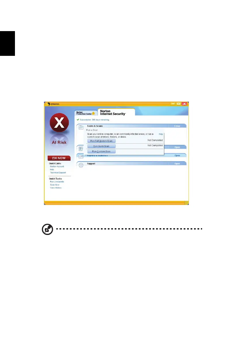 Note: For optimal security, run a Full System Scan when scanning
