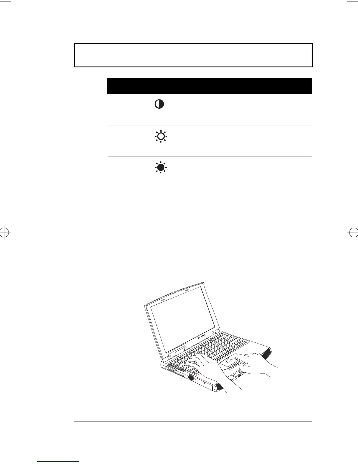 Fn-→ Brightness up Increases the screen