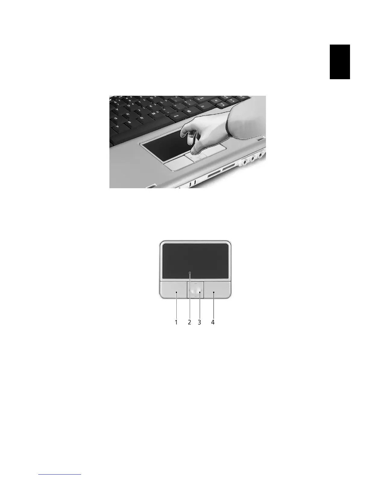 Press the left (1) and right (4) buttons located beneath the touchpad to