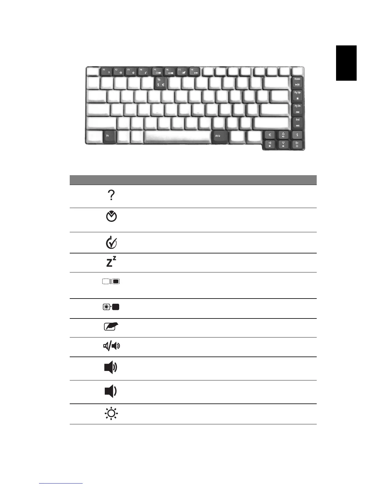 To activate hot keys, press and hold the <Fn> key before pressing the other key