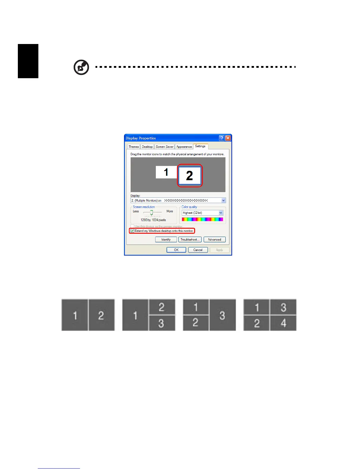 the check box Extend my windows desktop onto this monitor. Finally, Apply the