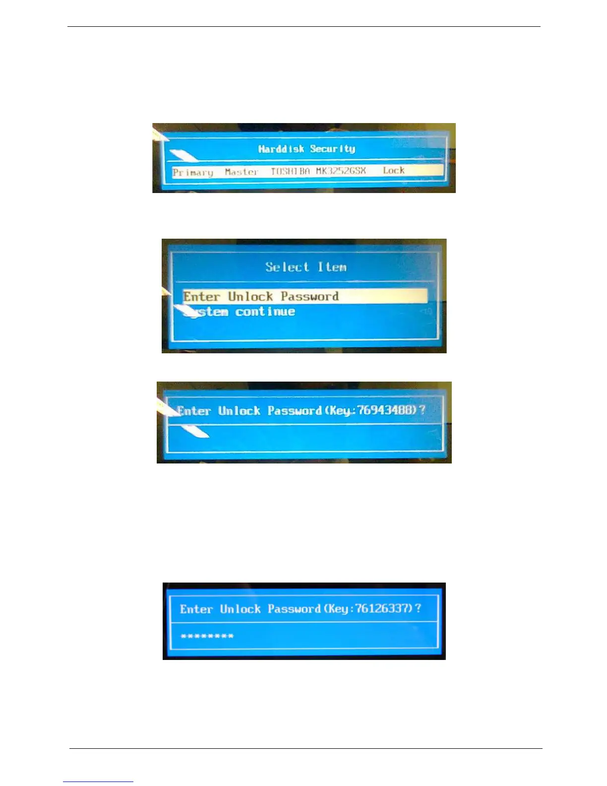 5. Key in the password from the previous step to unlock the HDD as shown.