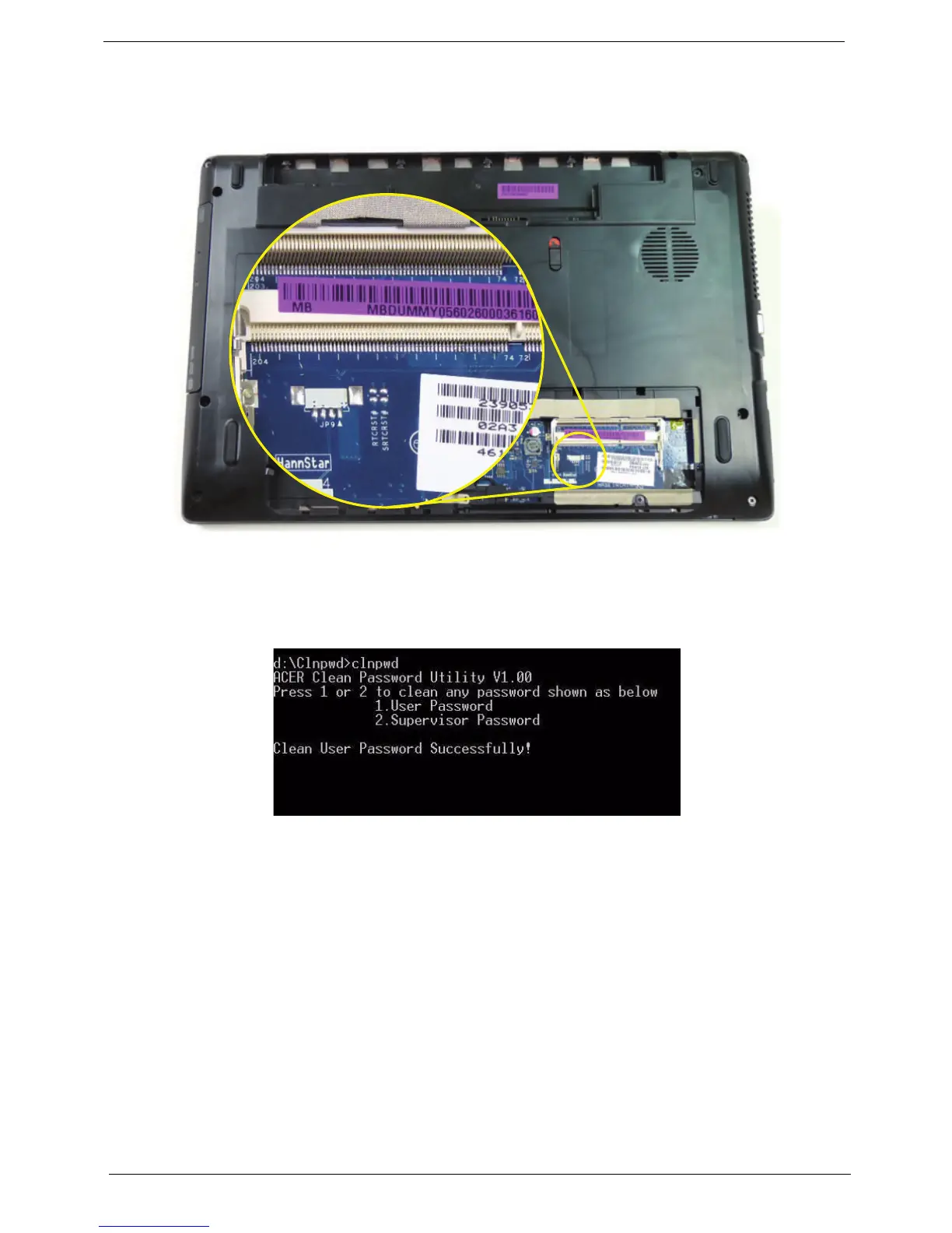 To clean the User or Supervisor passwords, perform the following steps: