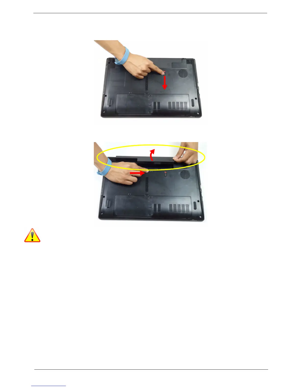 1. Turn computer over. Slide the battery lock in the direction shown.
