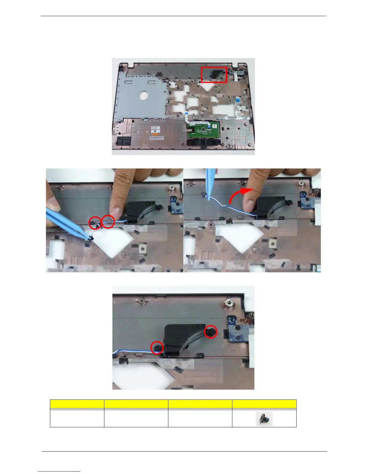4. Remove two (2) screws securing the speaker to the upper cover.