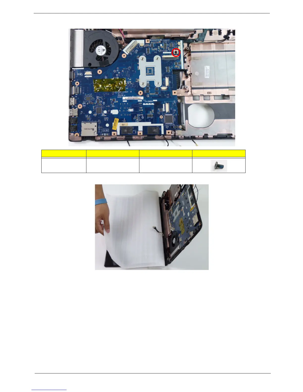 5. Remove the one (1) securing screw from the mainboard.