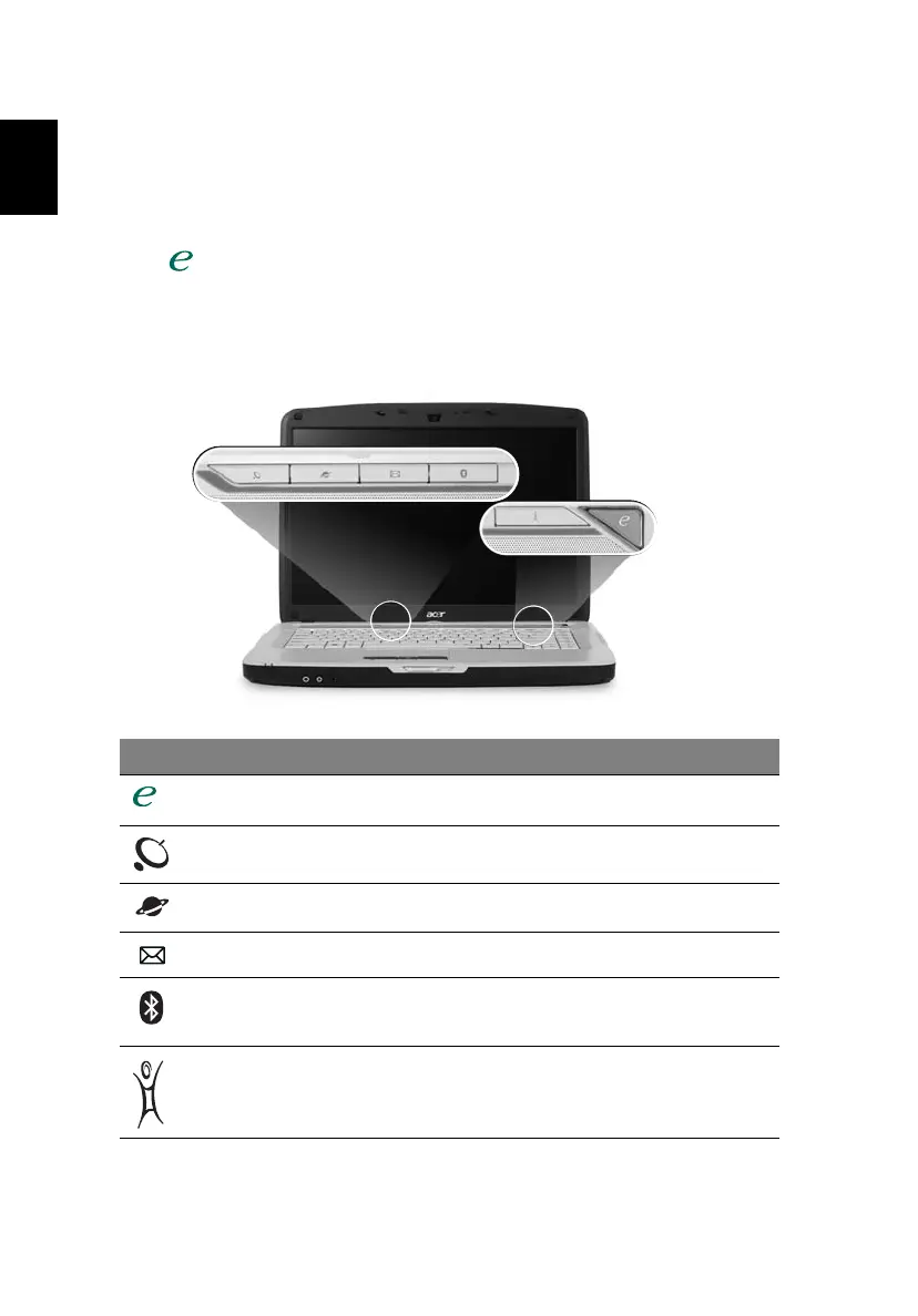 easy-launch buttons. They are: Empowering Key, WLAN, Internet, email,