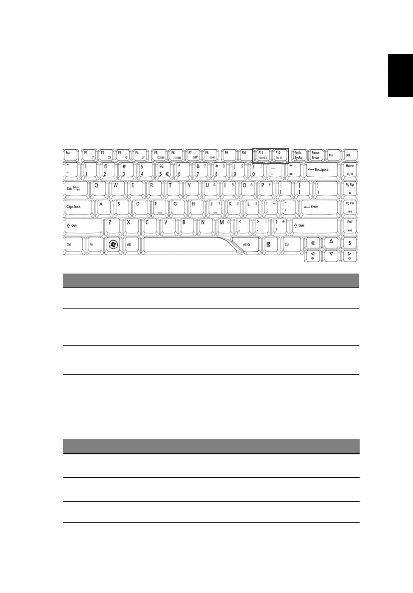cursor, lock, Windows, function and special keys.