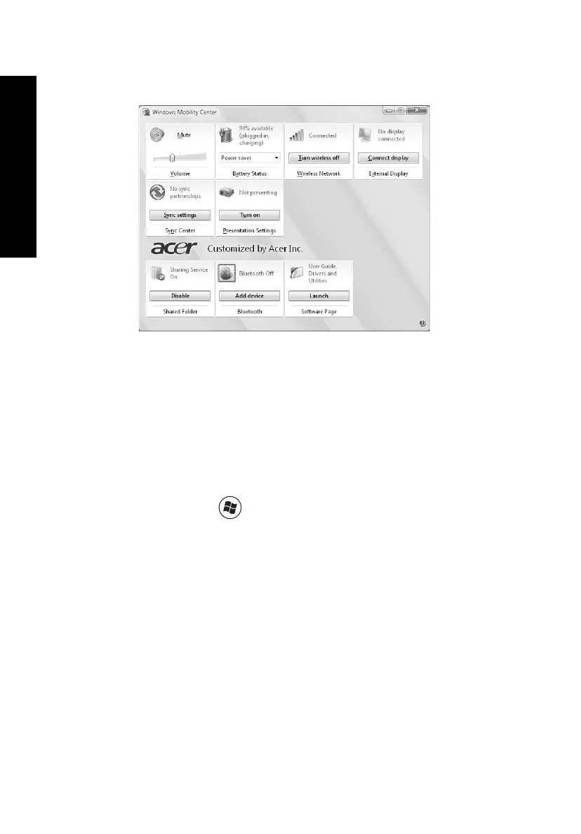 • Start Windows Mobility Center from the Control panel