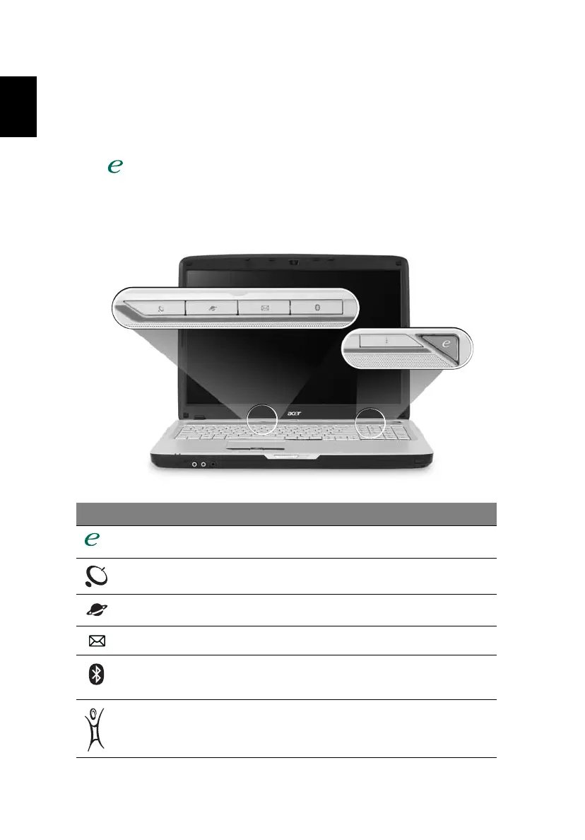 easy-launch buttons. They are: Empowering Key, WLAN, Internet, email,