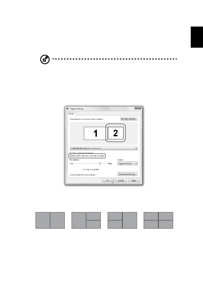 click the check box Extend the desktop onto this monitor. Finally, click Apply to