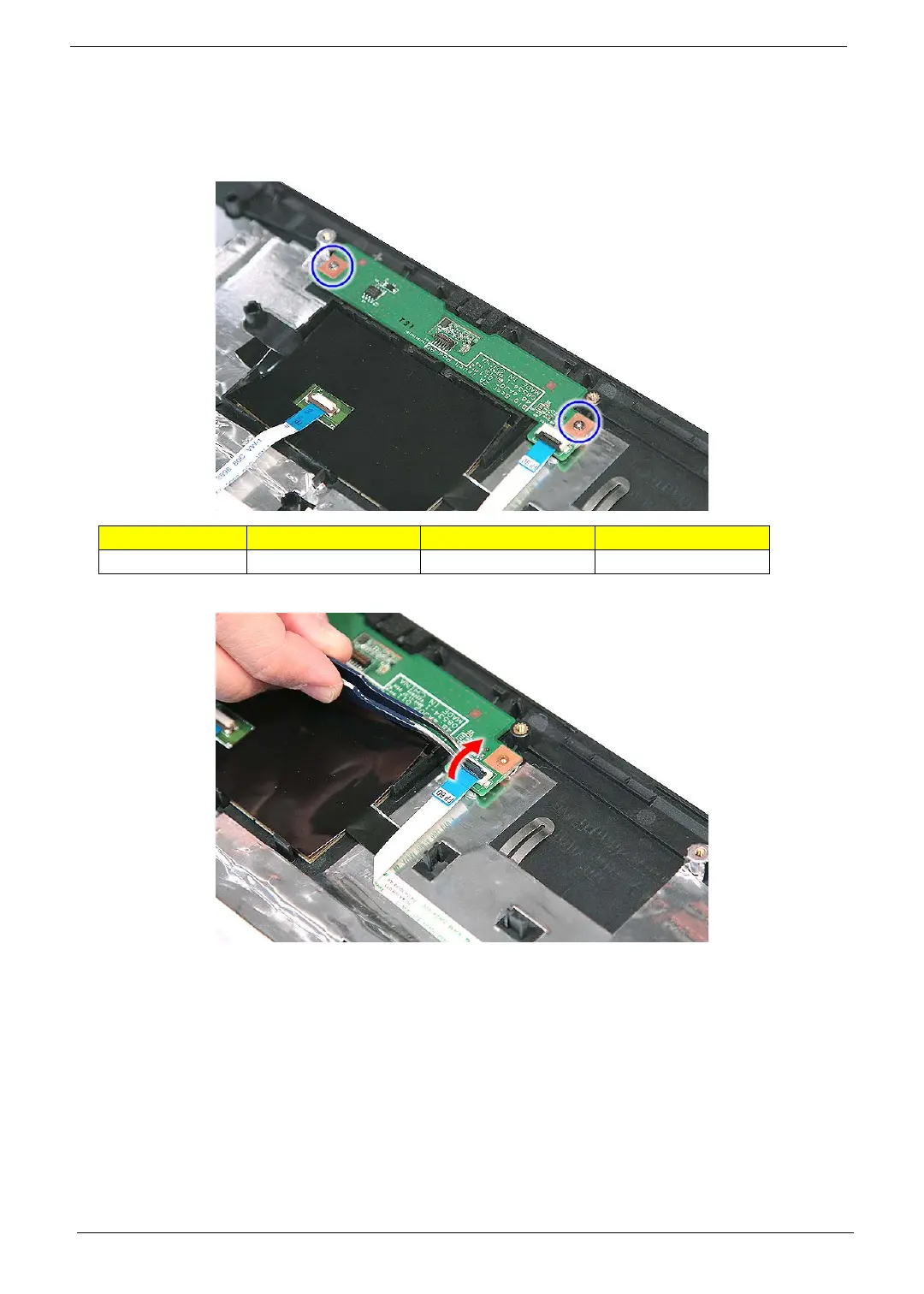 18. Disconnect the cable from the board and remove the board from the upper case.