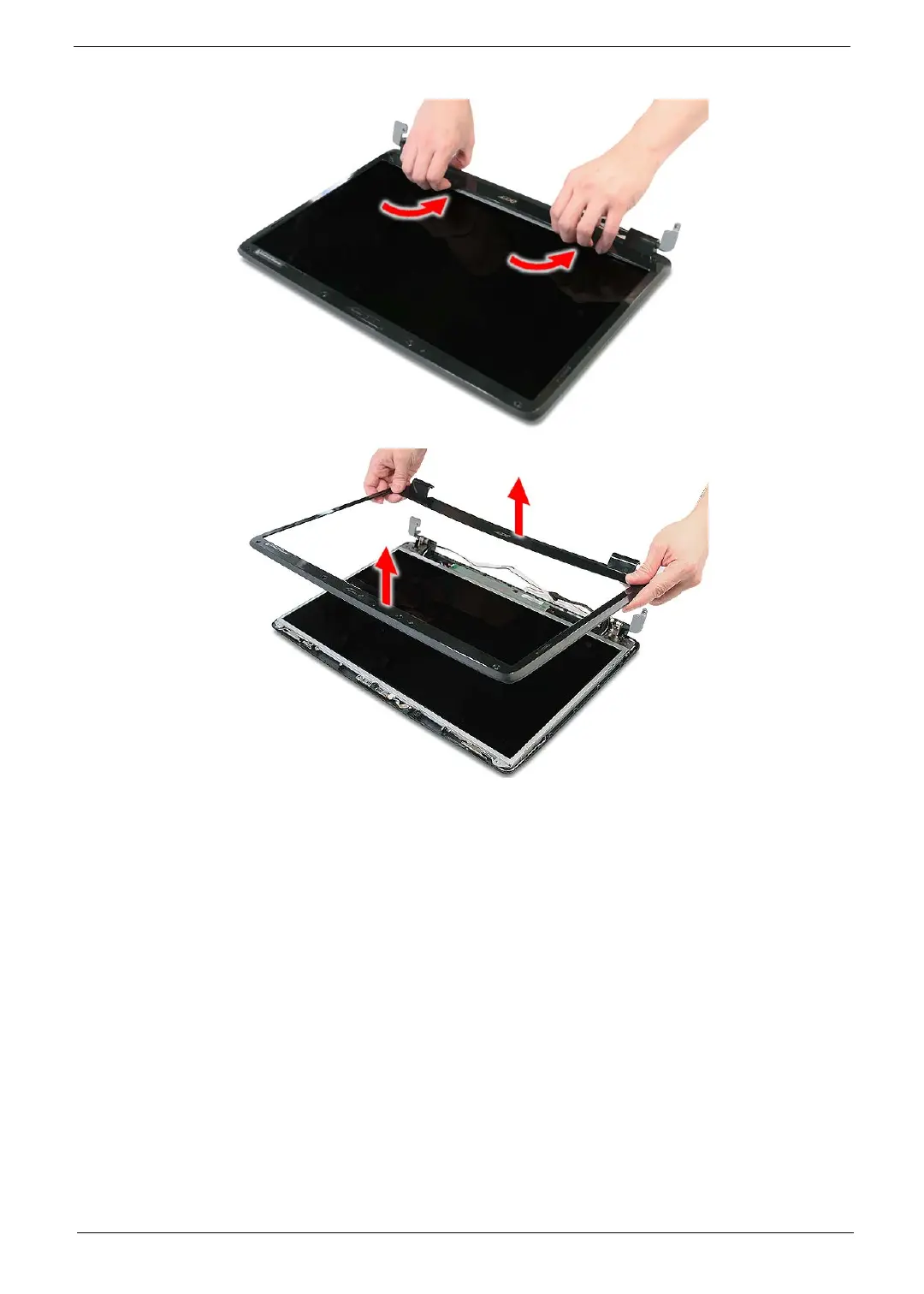 12. Carefully pry open the LCD bezel and place the bezel on top of the LCD panel.