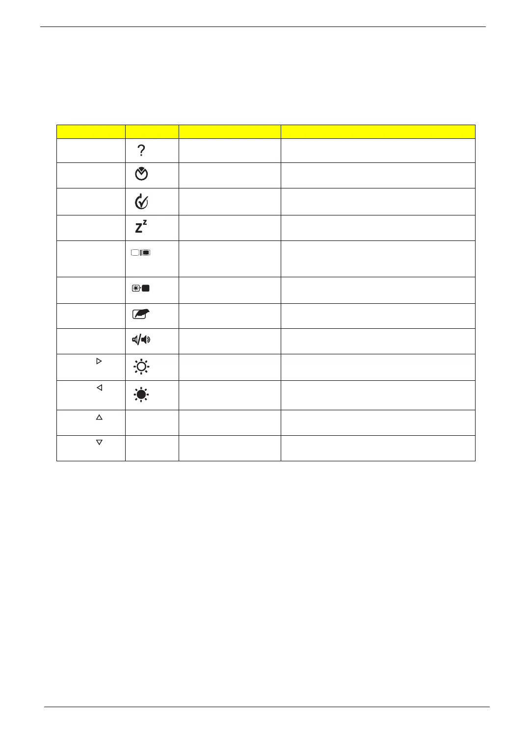 <Fn> + < > Brightness up Increases the screen brightness.