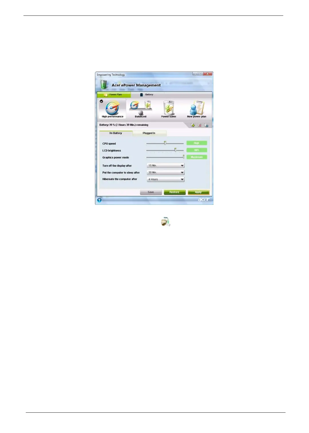 2. You can also launch the Acer ePower Management application and refer to the Battery status panel