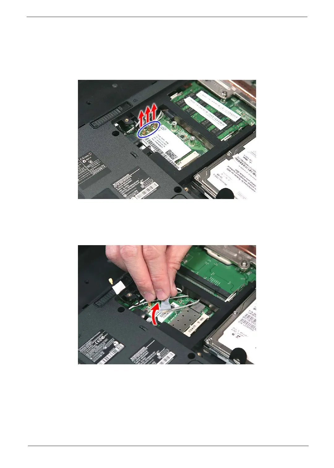 4. For Aspire 8730/8730Z Series, disconnect the three antenna cables from the WLAN board module.