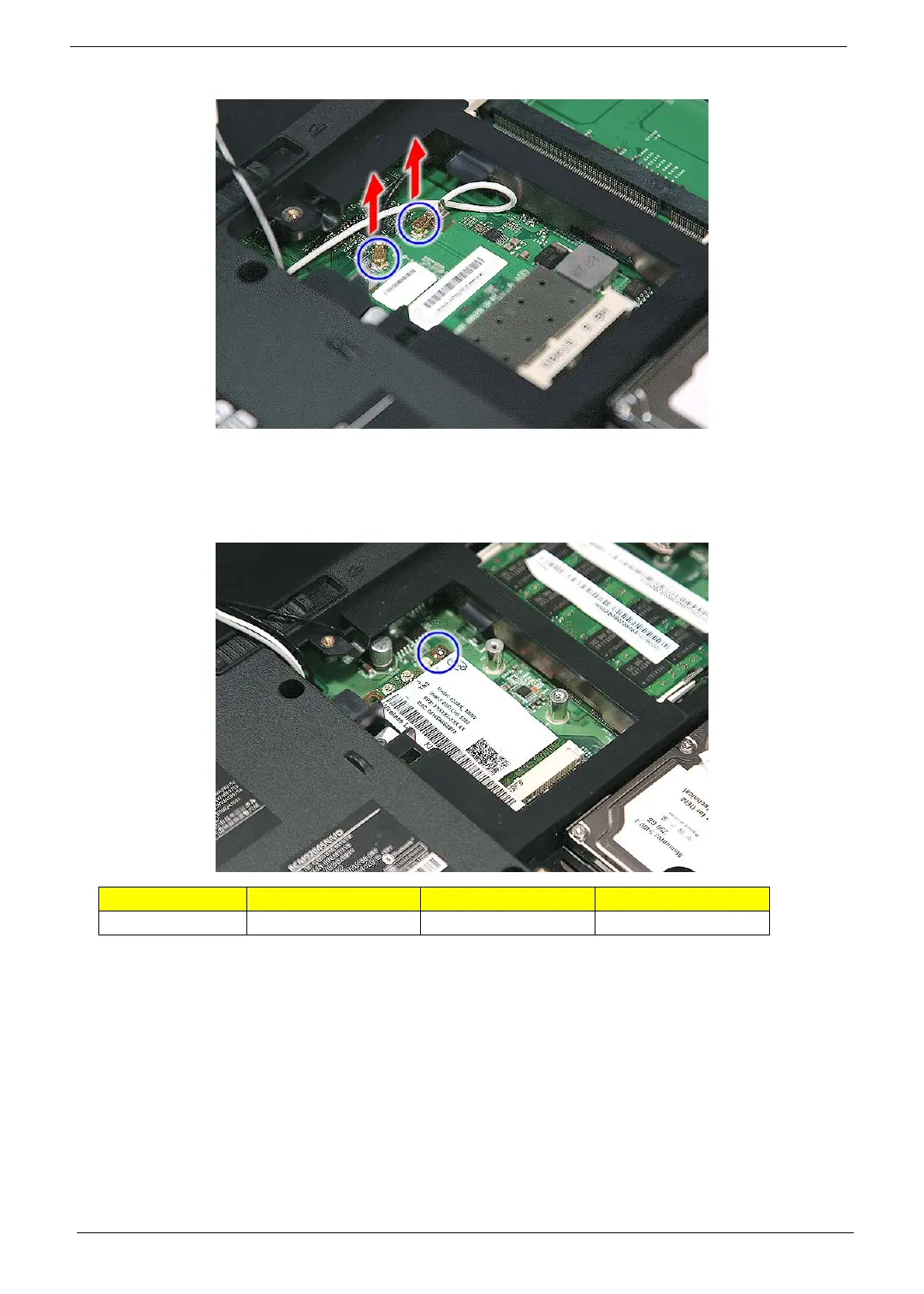 NOTE: There are 2 antenna cables connected to the WLAN board module. The Black antenna cable is