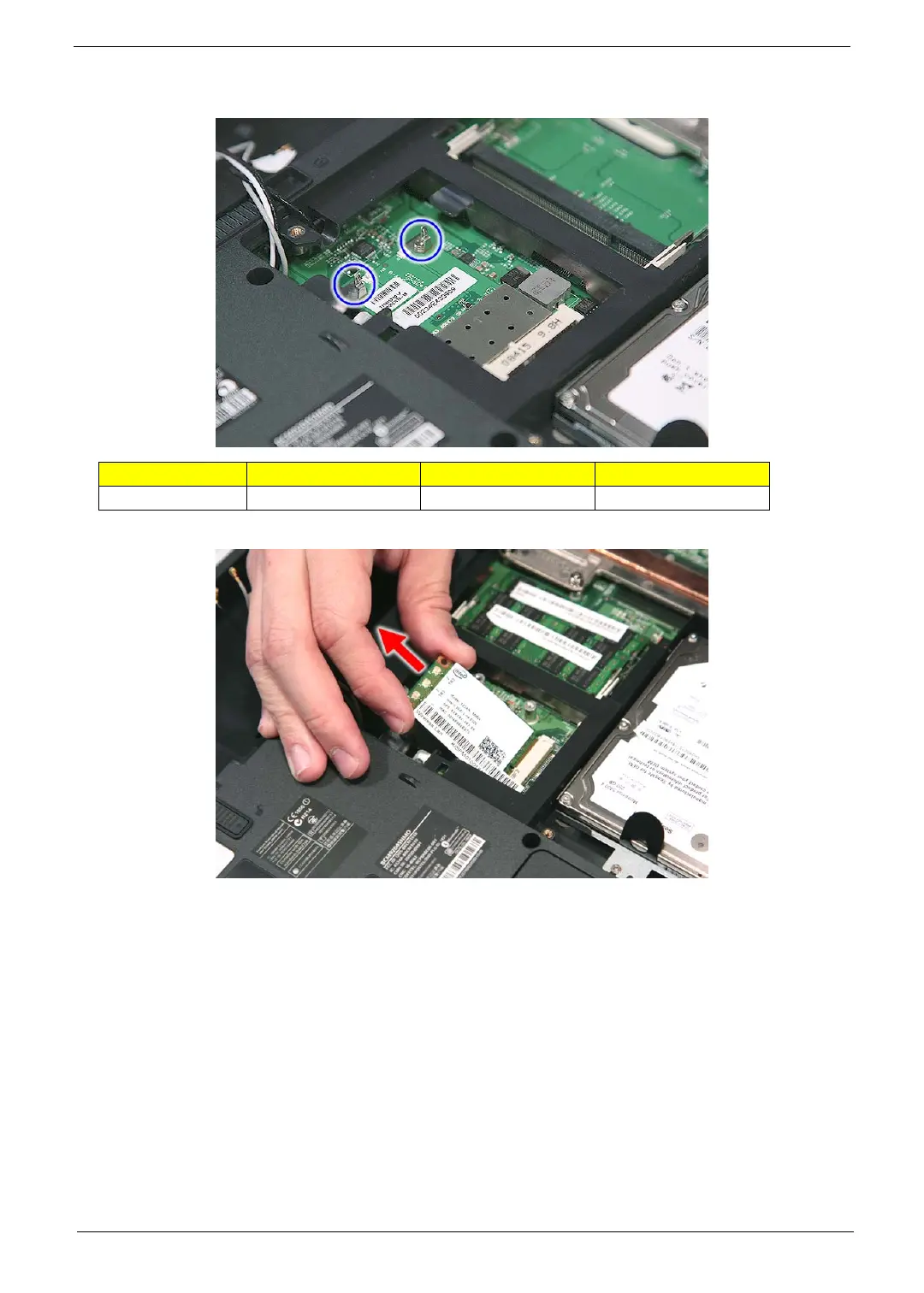7. For Aspire 8530 Series, move the antenna away from the WLAN board and remove the two screws (B) on