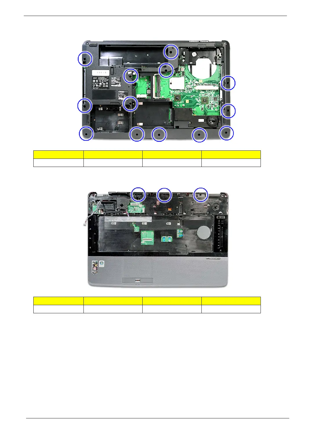 22. Remove the thirteen screws (A) from the bottom panel.