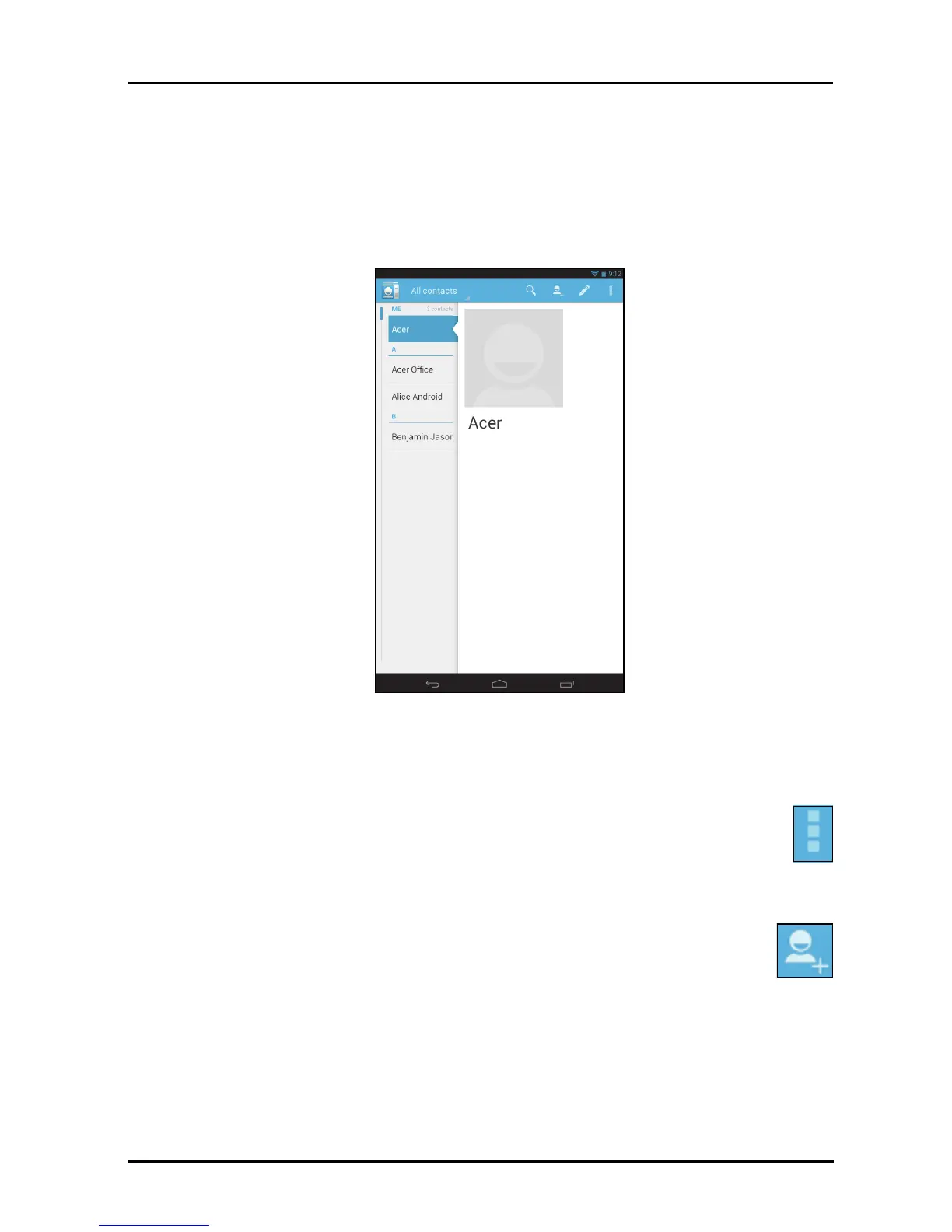 from the Home screen or the application menu to view your contacts.
