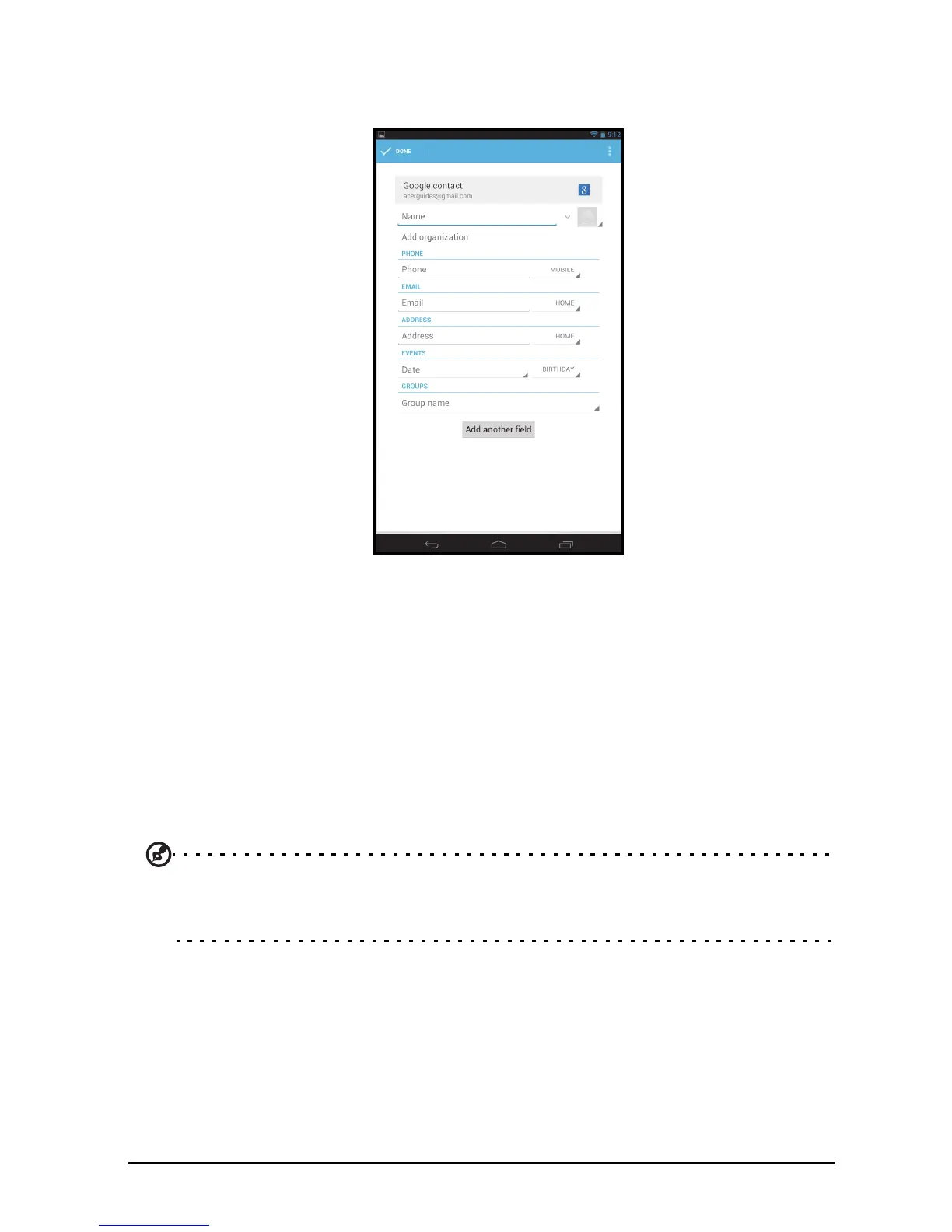 p-left corner) to finish and save the contact.