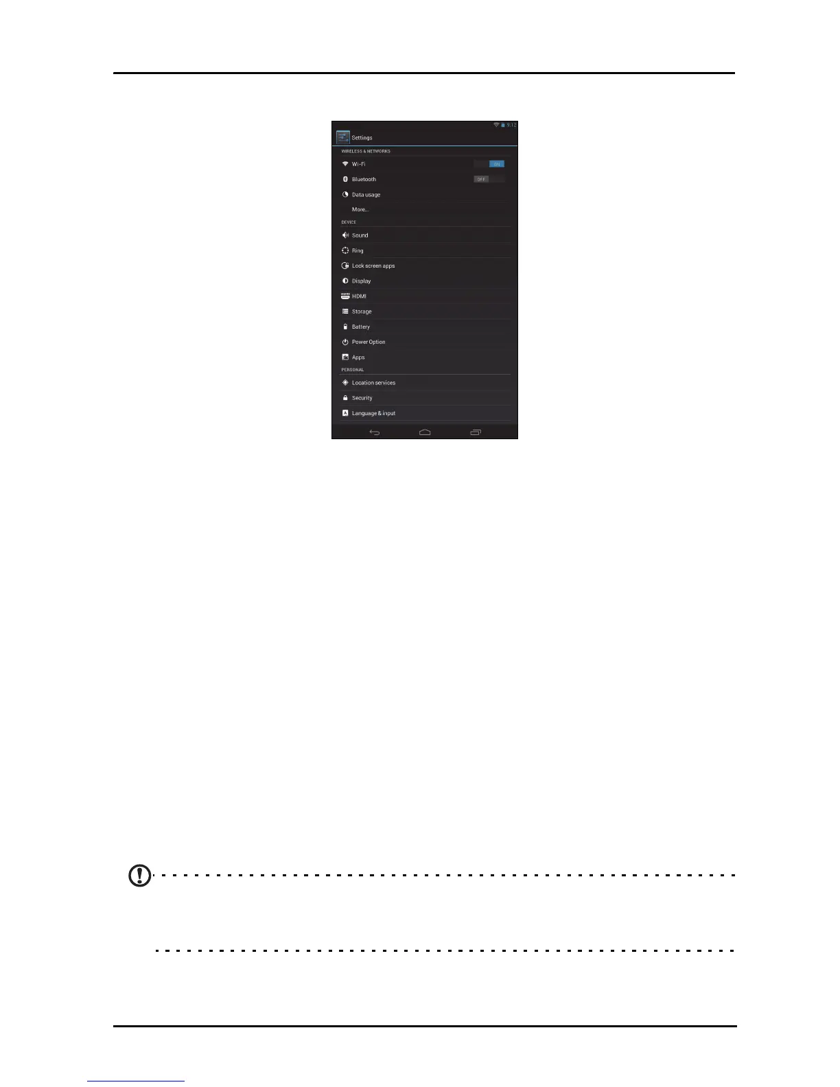 Ta p APPS > Settings, then under WIRELESS & NETWORKS each connection has