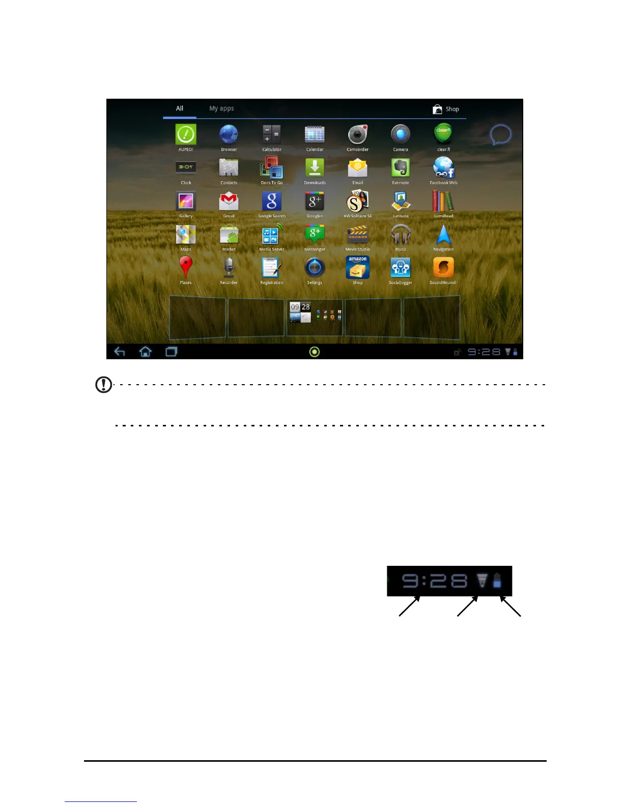 of your tablet’s status. The icons on the right side