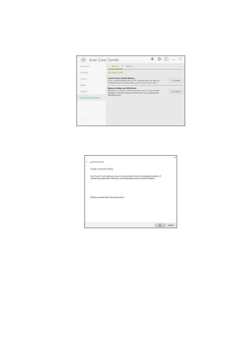 Default Backup to open the Recovery Drive window.
