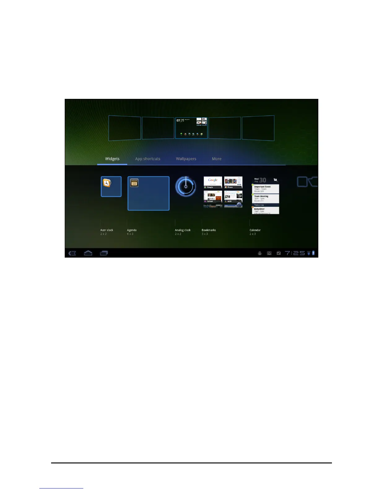 Tap Widgets to see small applications that you can add to a Home screen.