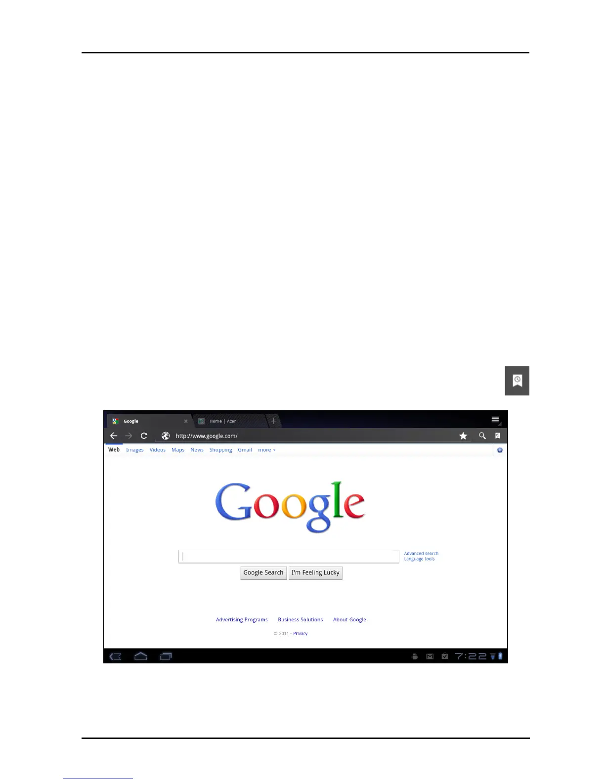 To start browsing, tap a bookmark from the bookmark widget on the Home