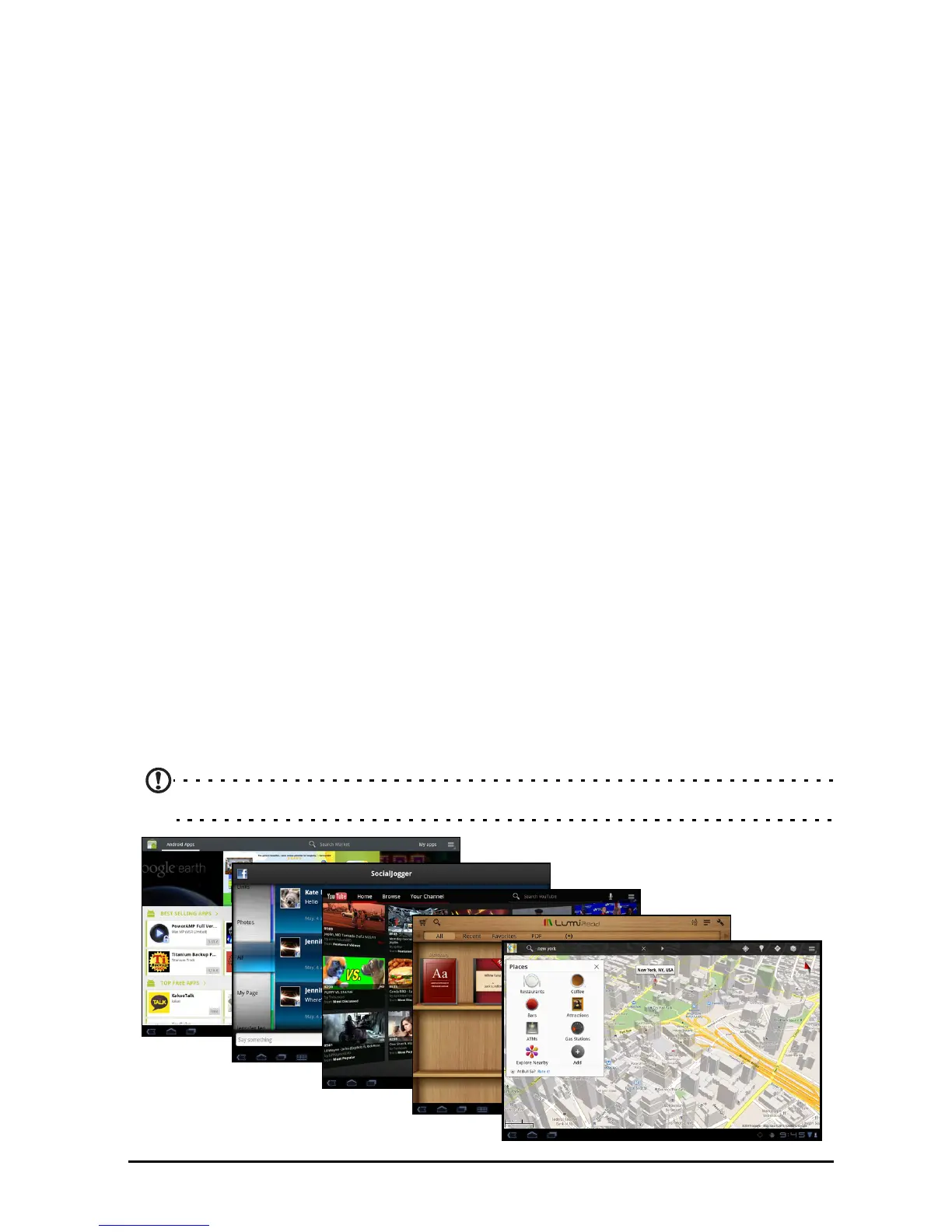 Your tablet provides a variety of preinstalled applications. Many of these