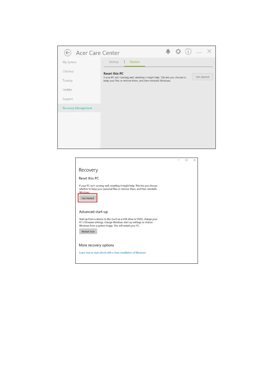 2. Select the Restore tab and click Get Started to open the