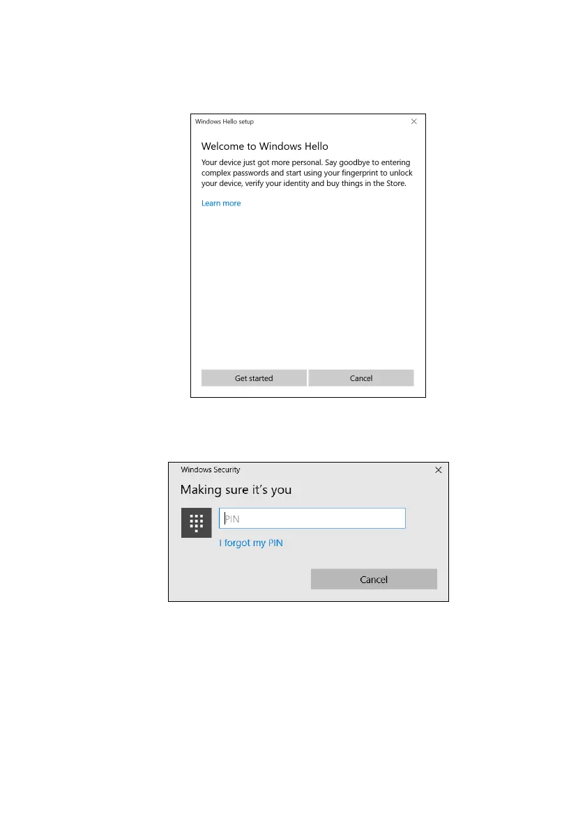 4. In the Windows Hello set up window, select Get started to begin the