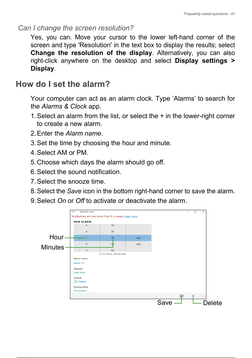 Your computer can act as an alarm clock. Type ’Alarms’ to search for