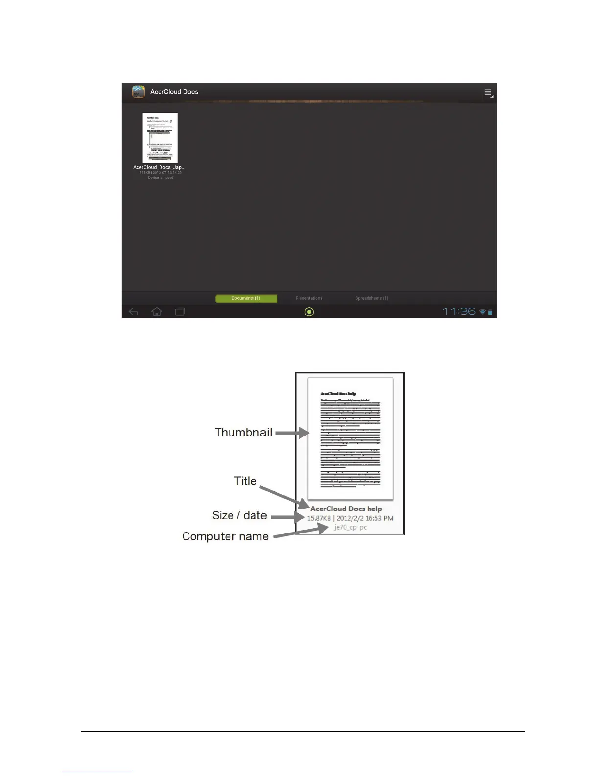 To view a document, simply tap on the thumbnail, and AcerCloud Docs will open it