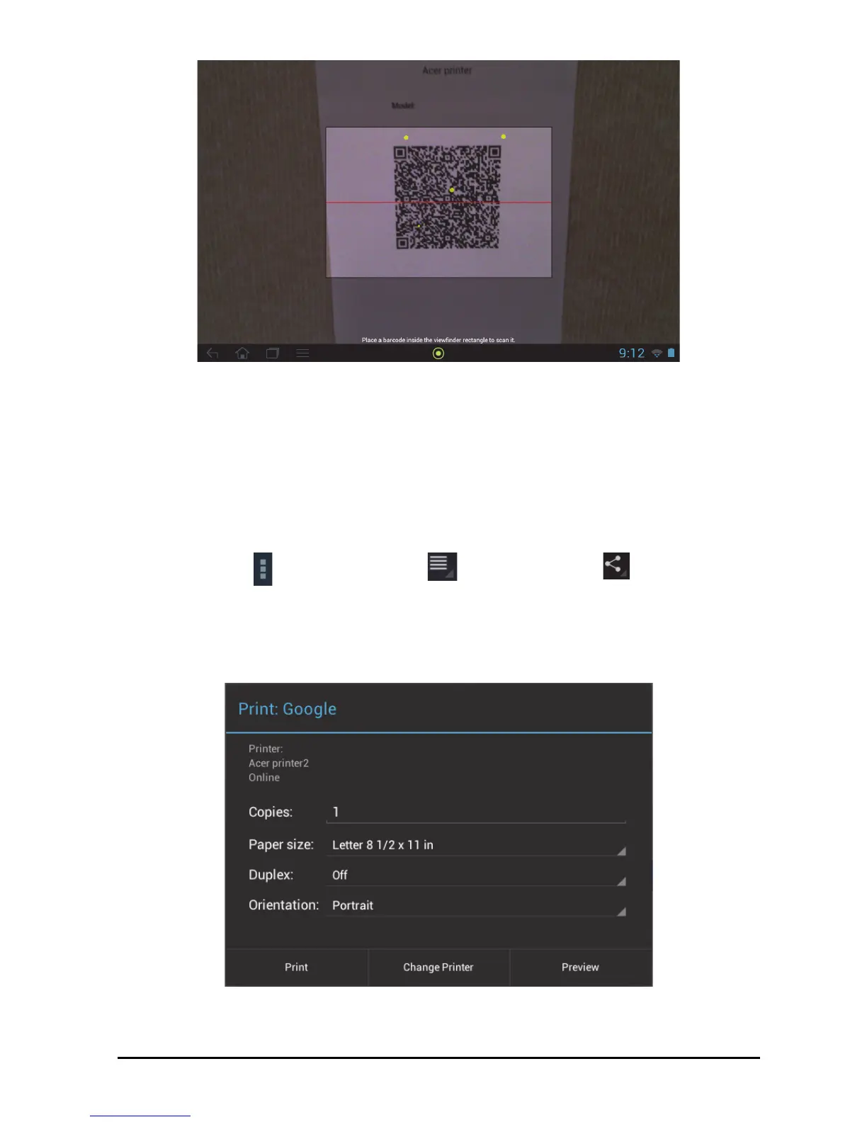 certain applications on your tablet. Select the Print with Acer Print option to use