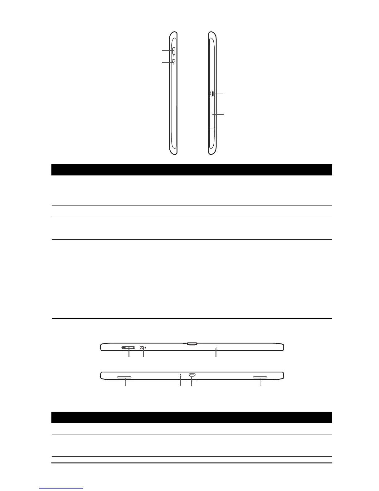 1 Power button Long press to turn the tablet on, press briefly to