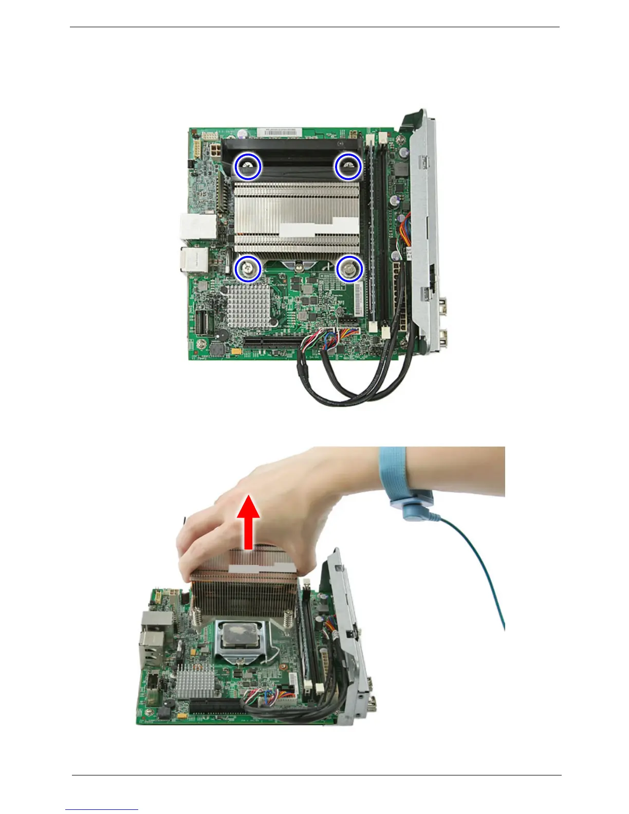 2. Use a screwdriver to loosen the four screws on the heatsink as shown below.