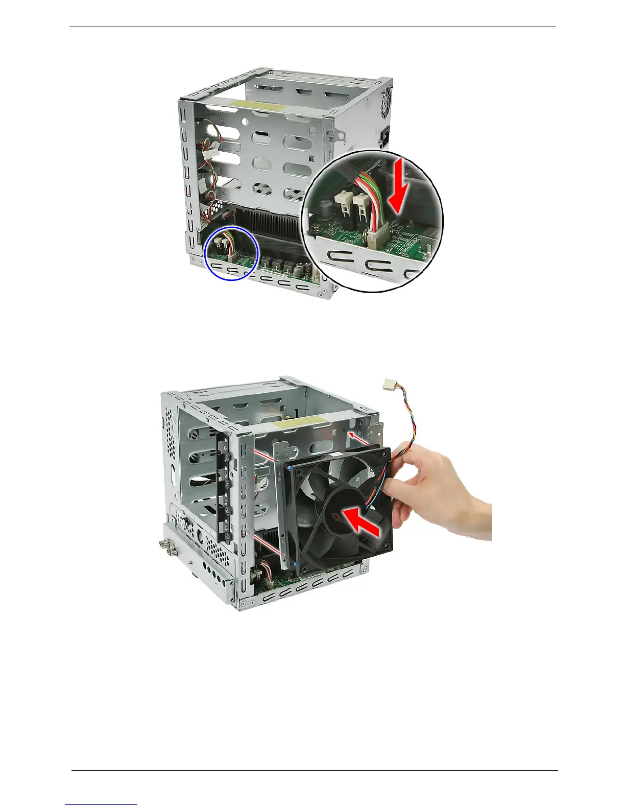 1. Insert the fan into the chassis, making sure that the screw holes on the fan are aligned with those on the