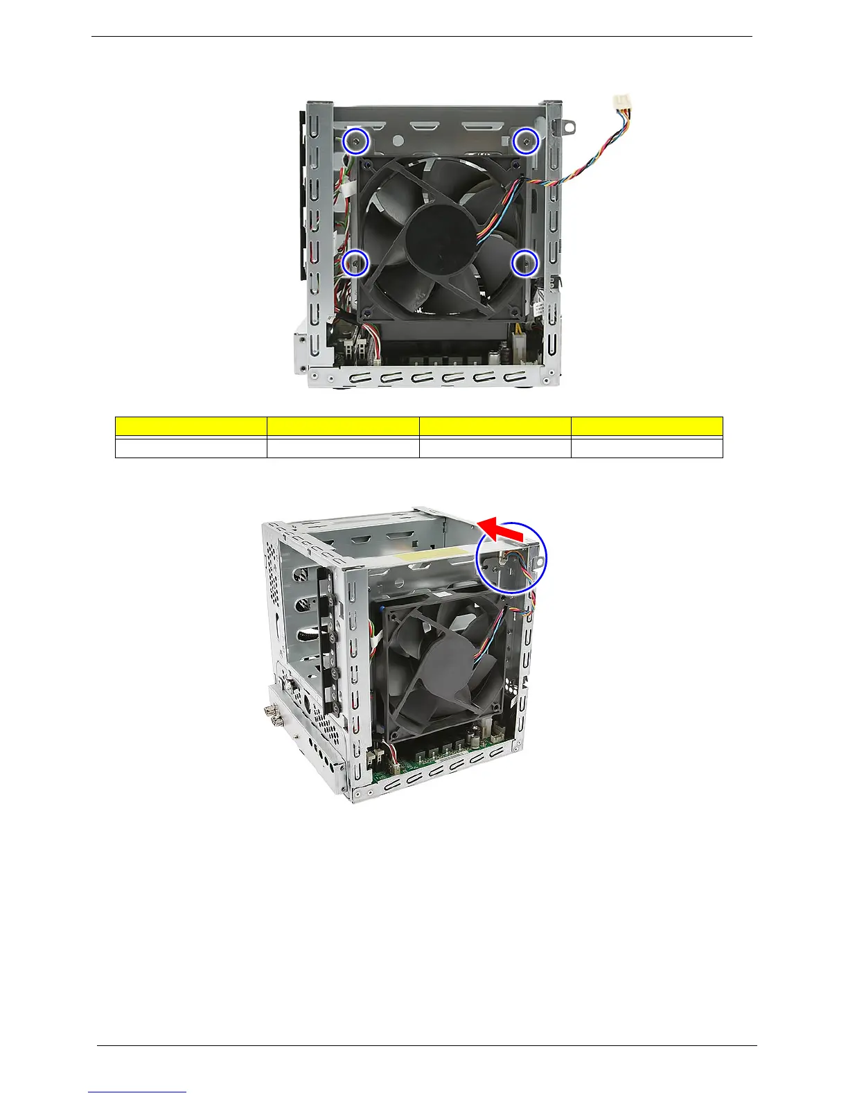 3. Push the fan cable connector through the chassis opening.
