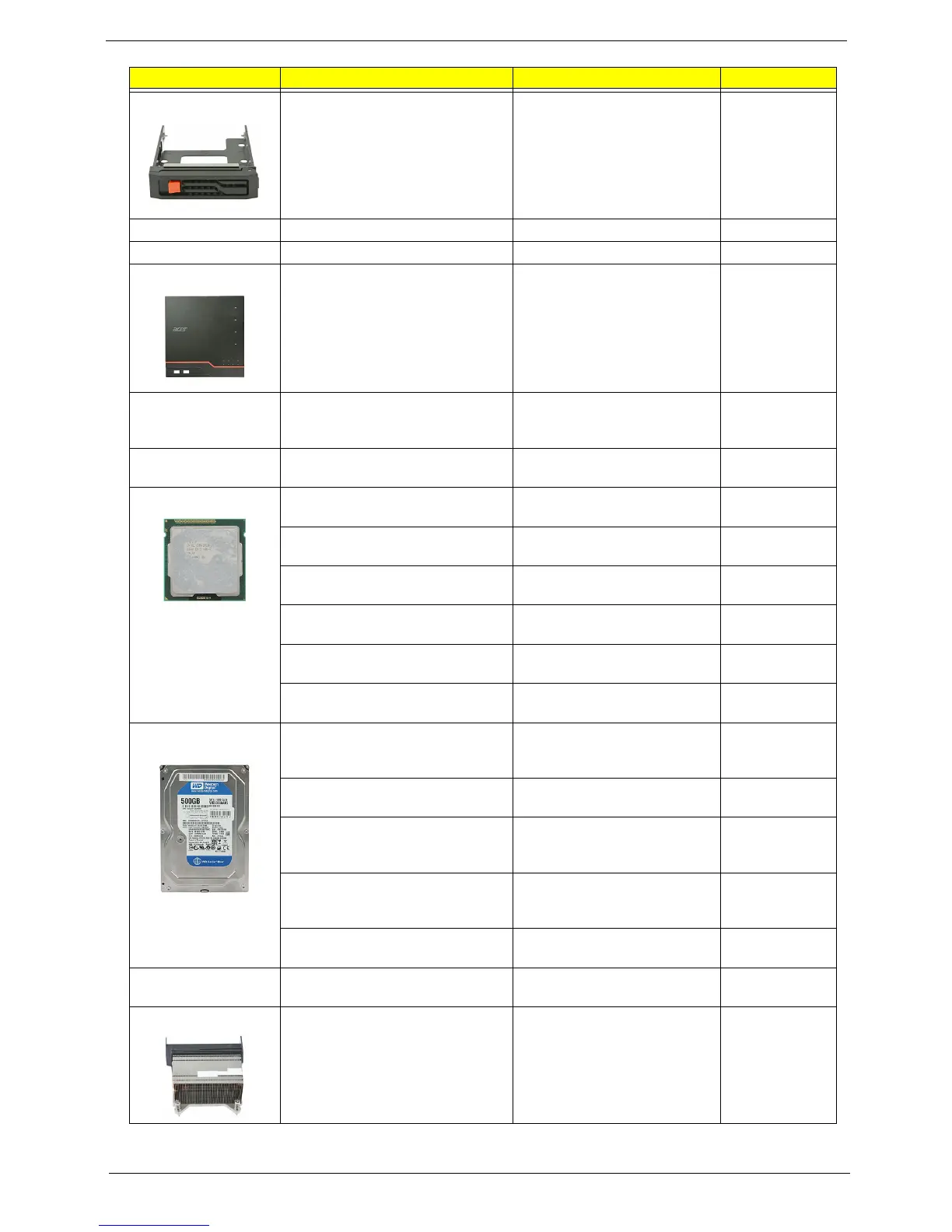 Category Part Name Description Acer Part No.