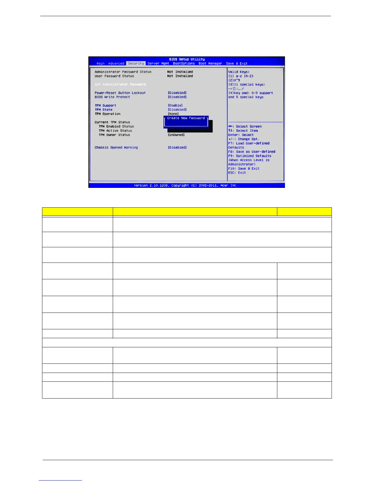 Administrator Password This item indicates if an Administrator password has been entered for the system. "Not